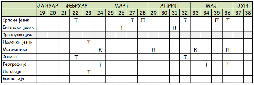 РАСПОРЕД ПИСМЕНИХ ПРОВЕРА ЗНАЊА УЧЕНИКА ЗА ДРУГО ПОЛУГОДИШТЕ ШКОЛСКЕ 2025/2026. ГОДИНЕ