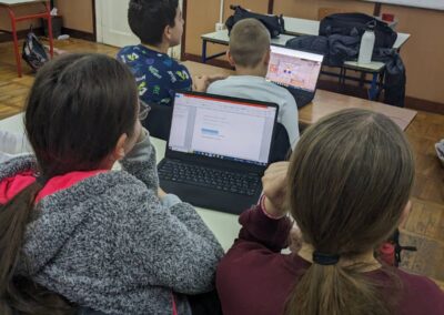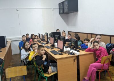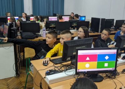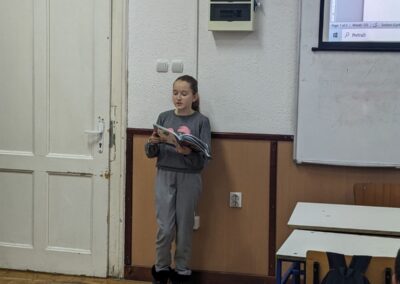 У петак, 24.11.2023. године, одржан је угледни час на коме су ученици петог разреда могли да повежу градиво из српског језика и књижевности, информатике и рачунарства и технике и технологије. Циљ часа био је популаризовање читања народне књижевности и лирских народних песама, савладавање страха од јавног наступа и продубљивање знања из области информатике и рачунарства и технике и технологије. Час је протекао у веселој и радној атмосфери, а ученици су могли да развију неке од међупредметних компетенција (компетенција за целоживотно учење, дигитална компетенција, рад са подацима и информацијама, сарадња, комуникација, естетичка компетенција).