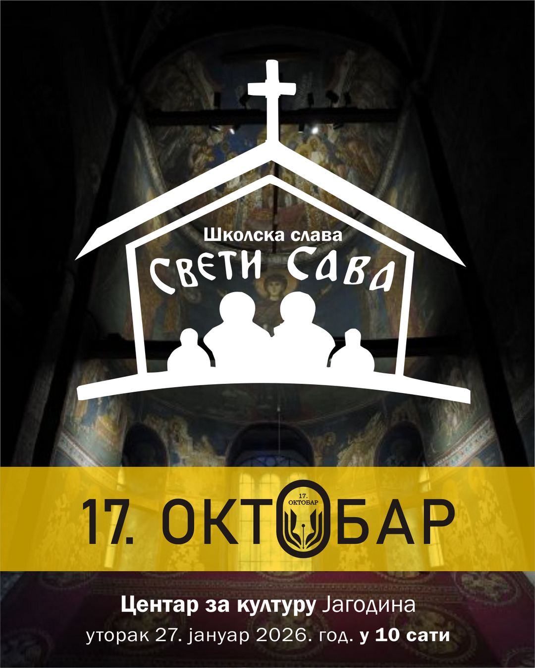 У уторак 27. јануара 2026. године свечано ћемо прославити школску славу Св. Сава. Програм обележавања почиње у 10 сати, свечаном академијом у Центру за културу у Јагодини, где ће ученици и наставници наше школе приредити свечану академију за све ученике, запослене, родитеље и пријатеље школе. Након академије у просторијама школе, а уз присуство ученика, свештеника и запослених биће уприличено сечење славског колача. Биће представљен и нови број часописа „РАСТКО“ који наша школа објављује уз подршку цркве. На крају програма свечано ће бити отворена изложба ликовних радова ученика наше школе.