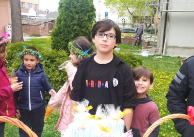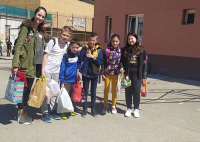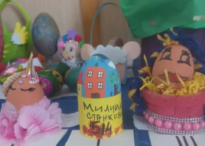 Поводом предстојећег празника Ускрса ученици петог и шестог разреда наше школе посетили су предшколце. Том приликом они су им поклонили сталке за ускршње јаје које су сами направили на часовима Технике и технологије и обојили на часовима Ликовне културе. Дружење је подсетило и неке ђаке времена кад су били предшколци.